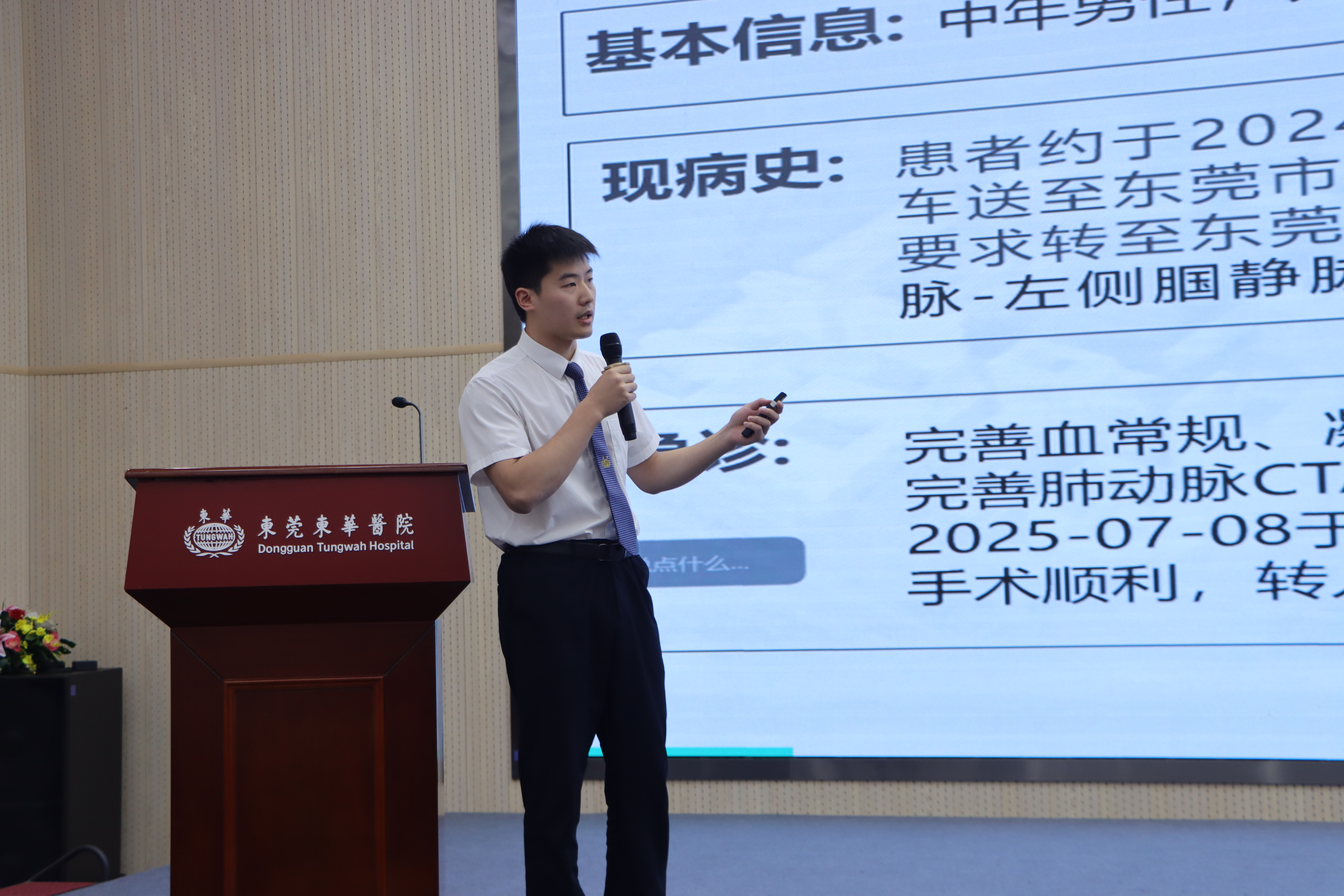 开幕式上杜绍林副院长致辞。他说“东华青苗”比赛不仅是竞技平台,更是培养临床人才的重要方式。他鼓励青年医师通过病例汇报锻炼思维,并感谢评委与工作人员的付出。